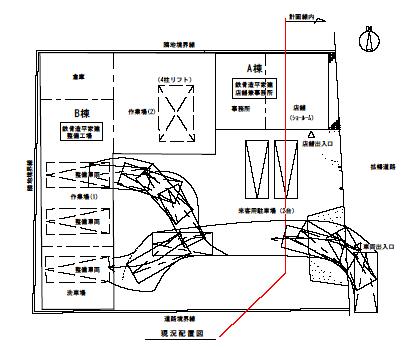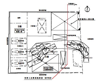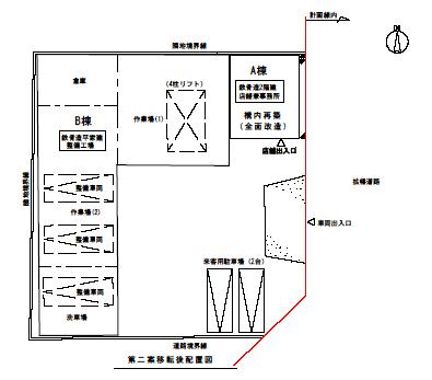 - 移転後に来客用と整備車両用のそれぞれの駐車スペースと、その車両動線が確保できること。