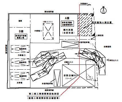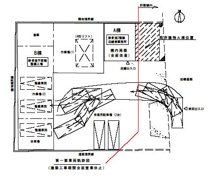 - 来客用及び整備車両の駐車スペースと車両動線が、移転後及び工事期間中に