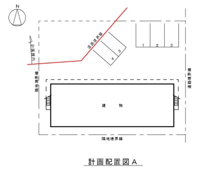- 計画配置図Aのとおり、9台の駐車スペ−スのうち、5台しか確保できません。
