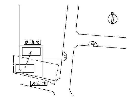 - 従前地と仮換地はレベル差(高低差)はなく、造成工事は生じないこと。