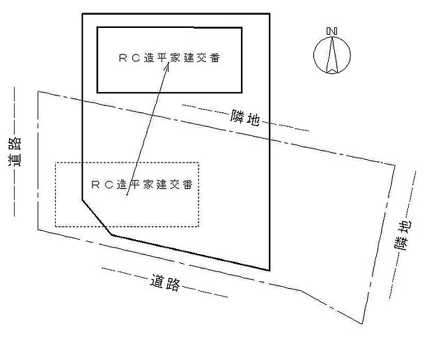 従前地と重なりのない仮換地先の北側に建物を再築する案です。