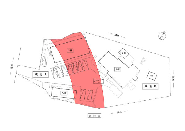 従って、C・D棟の2棟を残地Aへ移転することは不可能であるため、この2棟の分割が可能か検討します。