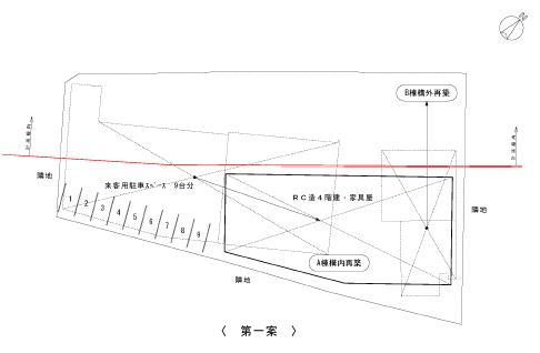 以上、三つの分割案の検討を行いましたが、第一案・第二案は共に業務管理に問題が生じます。又、全ての建物が移転となり、長期の営業休止が伴うことから補償金額も高額になります。