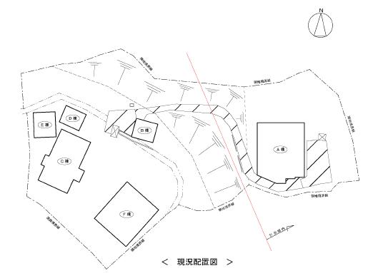 傾斜地への建物の建築は困難でありますが、その1部を切り土し、適切な施工を行えば建築可能な土地に換えることは可能です。本案は、残地の一部を切り土し、A棟を移転させ機能回復を図ります。