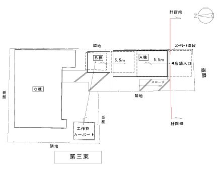 - 従前と同じ道路面に建築することで営業形態を損いません。