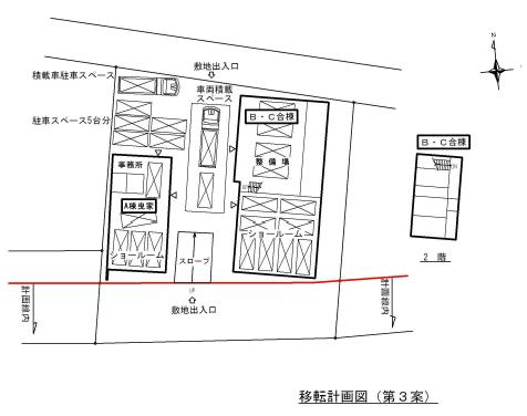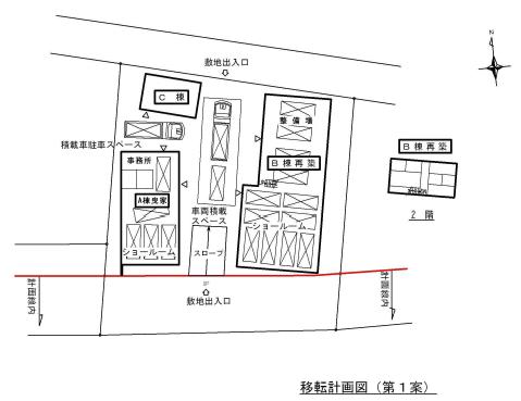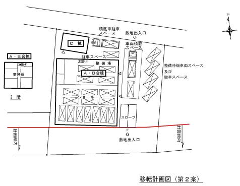 | 第一案では、来客用の駐車場が喪失します。第二案ではこの点に留意して検討します。 |