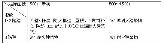 ※2【準耐火建築物】 法第2条の3(詳細は多種に及ぶため省略いたします。)