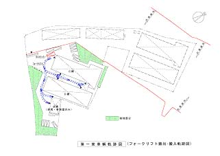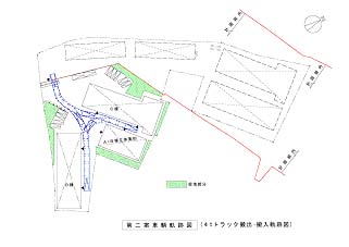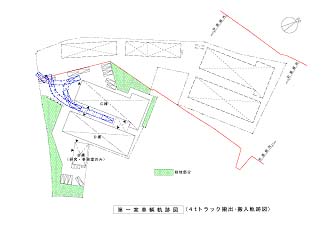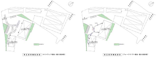 - 出入口が1ヶ所しかないため、工事期間中は、工事用車輛と製品等の搬出入車輌(4tトラック)が交差し危険である。