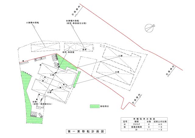- 建物移転後に従前(14台)の駐車場が確保できるか検討します。