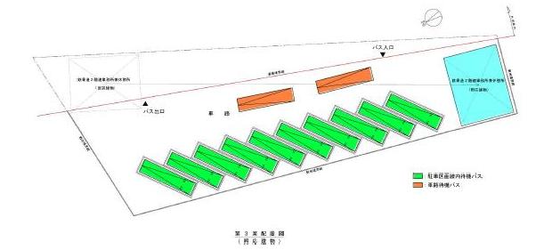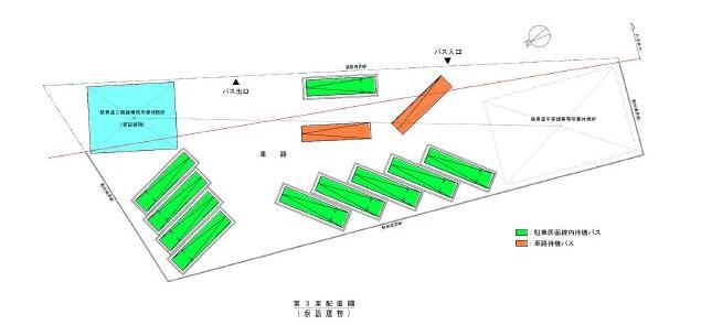 - バスの駐車スペースは現状と同等の台数分を確保すること。
