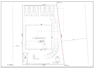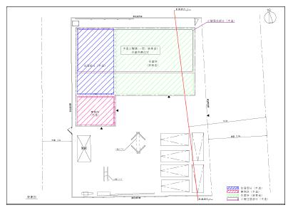 - それ以外の空地は、6台分の整備車輌置き場、作業スペースとして利用されています。(自家用車輌は隣地に2台分の保管場所を確保しています)