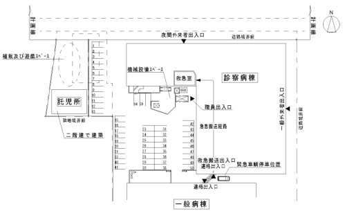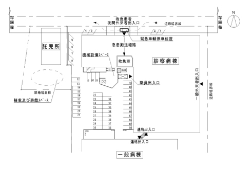 - 職員・患者の出入りに、救急車輌の動線が重なり、安全性に欠ける。