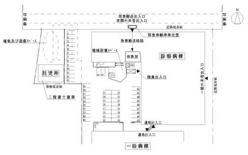 - 病院と同一敷地内にある職員専用の託児所は、24時間の医療態勢から、休止することなく構内での移転を検討します。